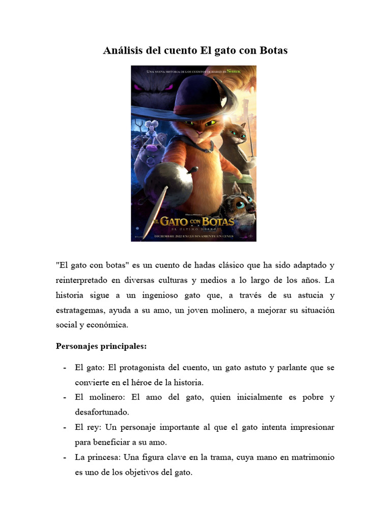- Guía detallada del cuento del gato con botas: actividades y valores para niños